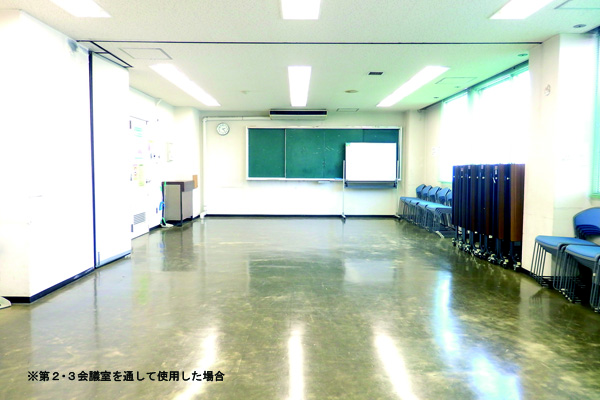 | 第2会議室 | 25人 | 30㎡ | ホワイトボード *第3会議室との2部屋通しでの利用可 |