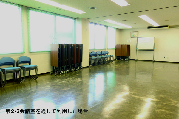 | 第3会議室 | 25人 | 33㎡ | ホワイトボード *第2会議室との2部屋通しでの利用可 |